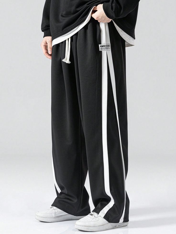 Korean Street Fashion Inspired Loose Pants with Clean Finish and Side Text